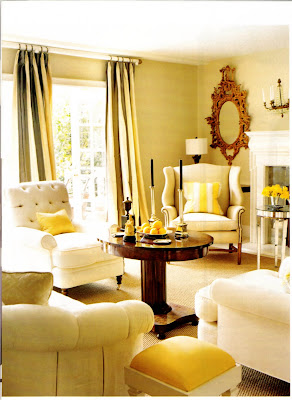 I finally got my hands on an old November 2001 issue of House & Garden which features the former home of Mary McDonald. Even at this early point in her career, McDonald already had a keen sense of color, although her signature blue and white color combination is evident only in small doses. The gorgeous bedroom was inspired by Dior's Paris salon (which, by the way, has inspired quite a few designers). The white trim, molding, and fabrics provide the perfect counterpoint to the serenely sophisticated gray walls. Other color schemes throughout the house include cream, beige, and white in the living room and aqua and brown in the sitting room. All of these color schemes provide the perfect backdrop for McDonald's antiques, which include inherited pieces of furniture and accessories.